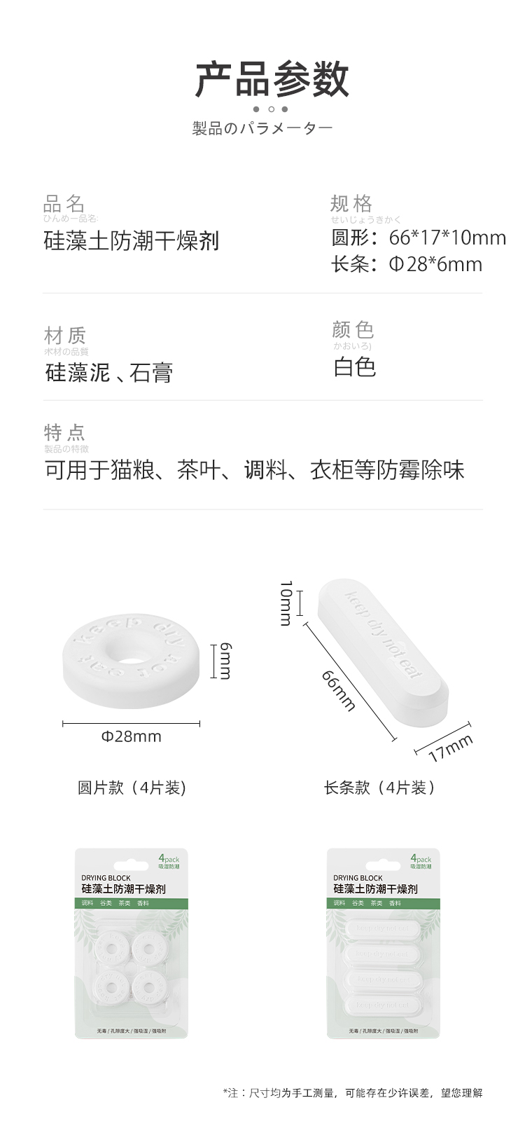 • 商品名稱:4個裝硅藻土防潮干燥劑 食品除濕干燥片--圓形