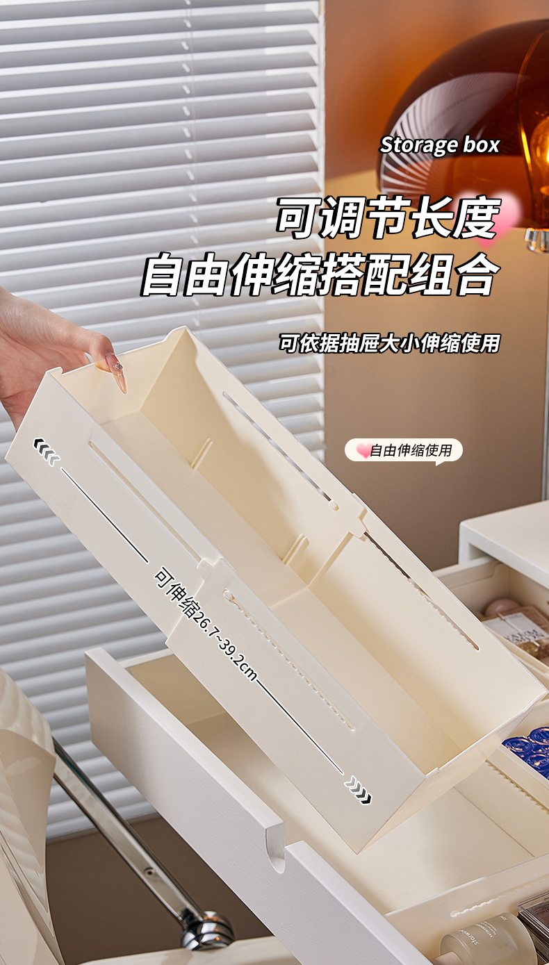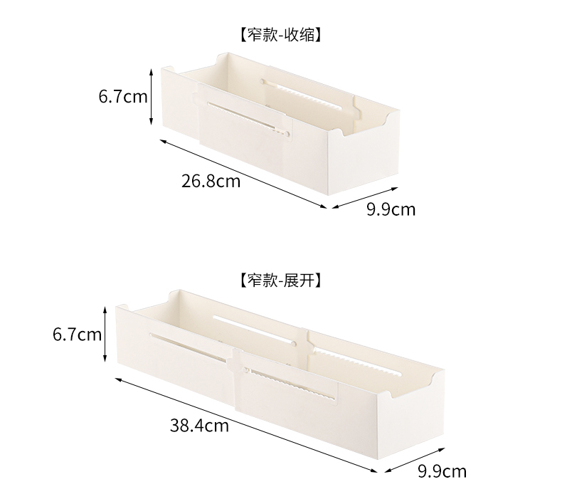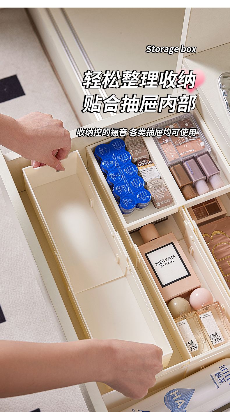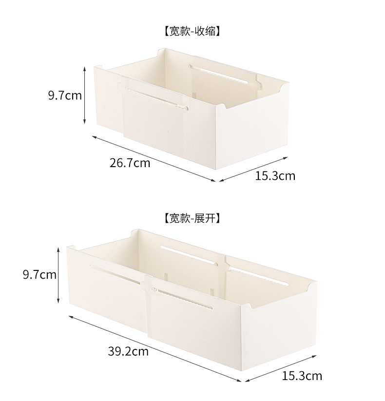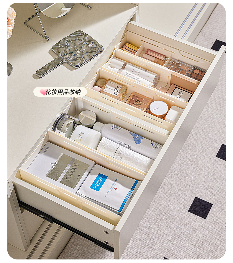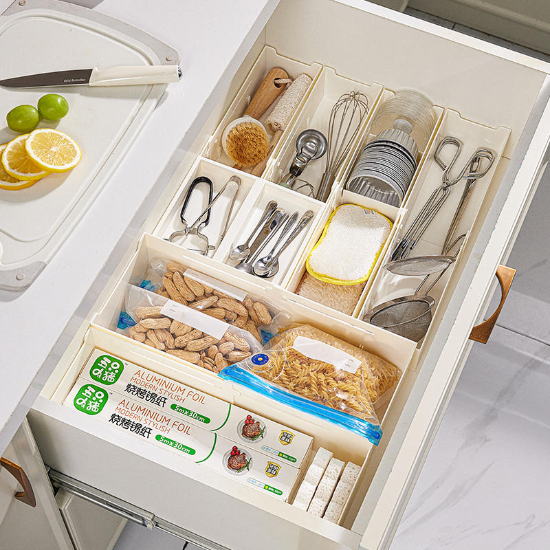 HQS-222132 日式家居廚房抽屜分隔可伸縮帶隔板收納整理盒 小號窄款--奶油白色 17 登錄查看