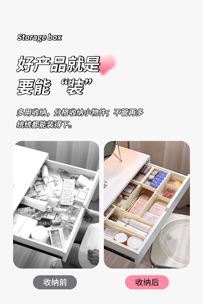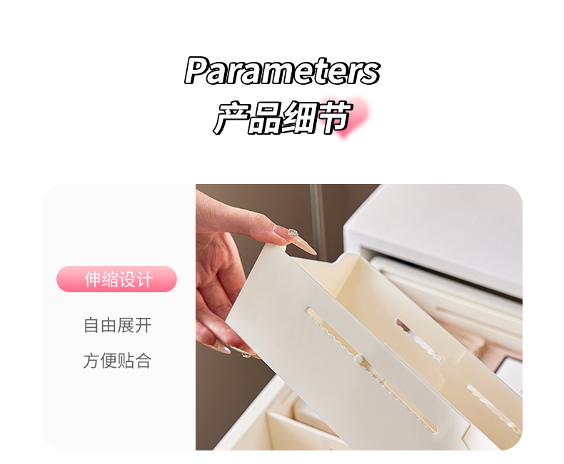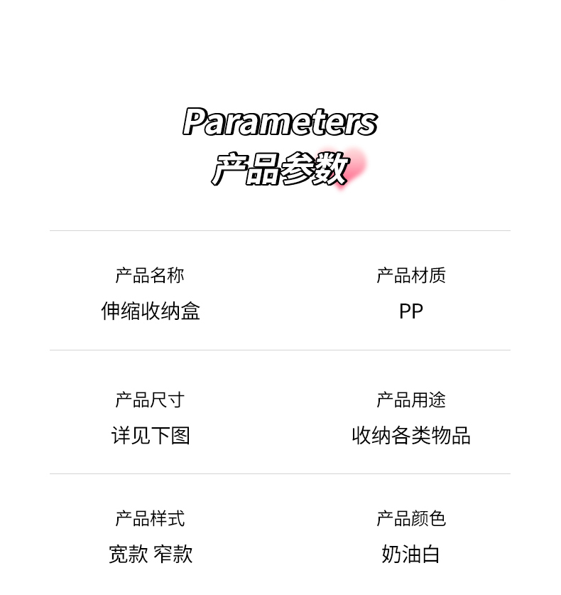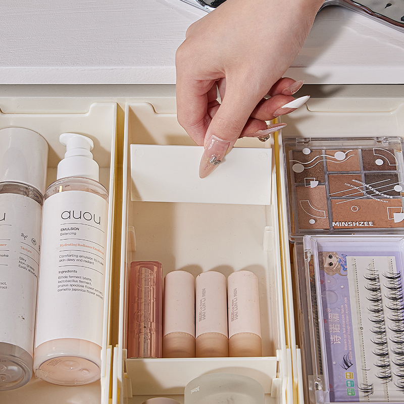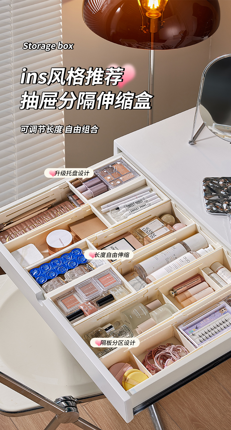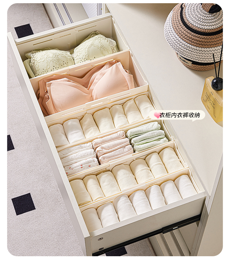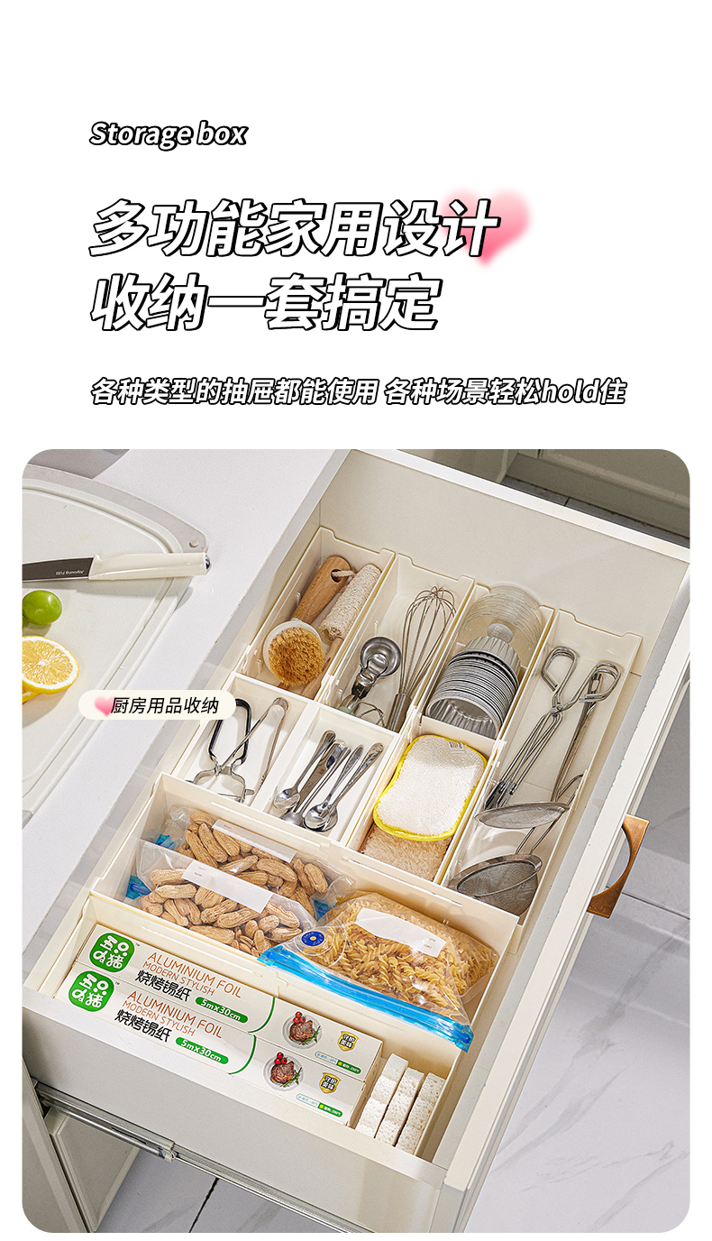 HQS-222132 日式家居廚房抽屜分隔可伸縮帶隔板收納整理盒 小號窄款--奶油白色 17 登錄查看