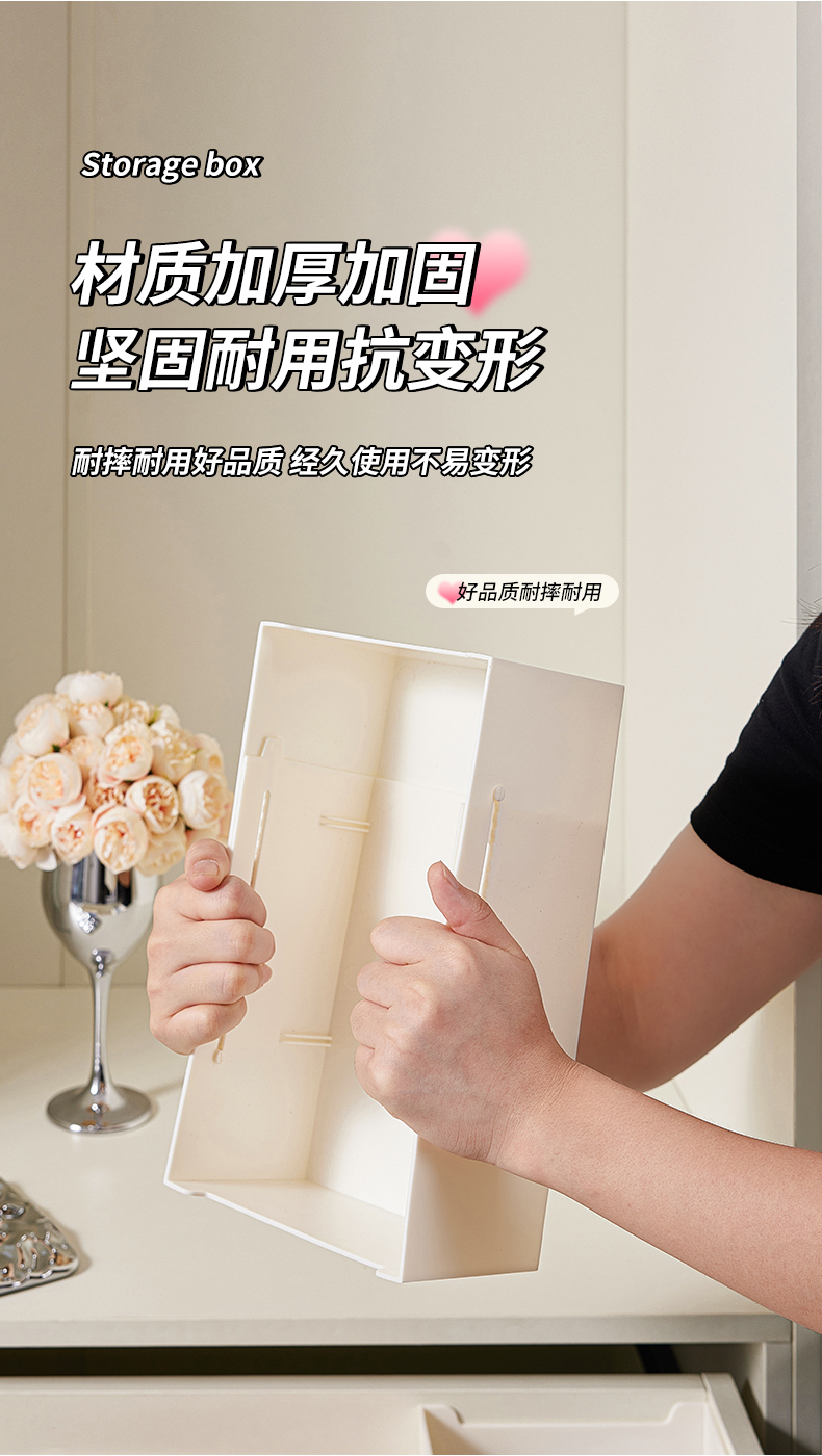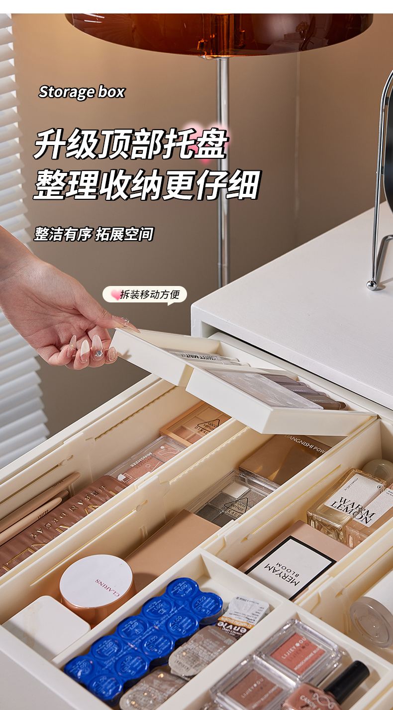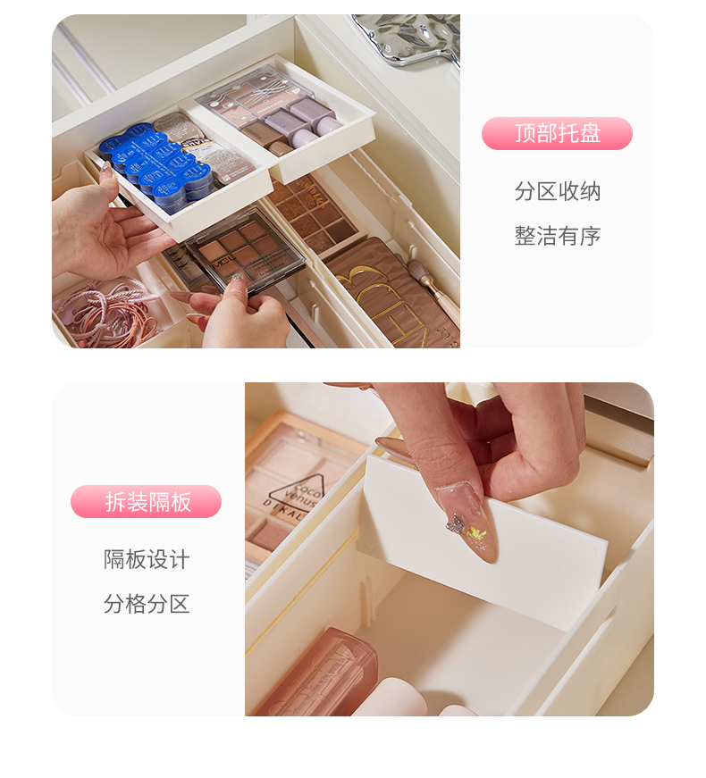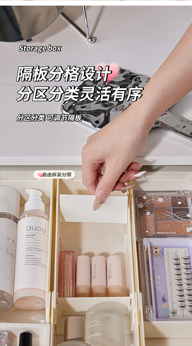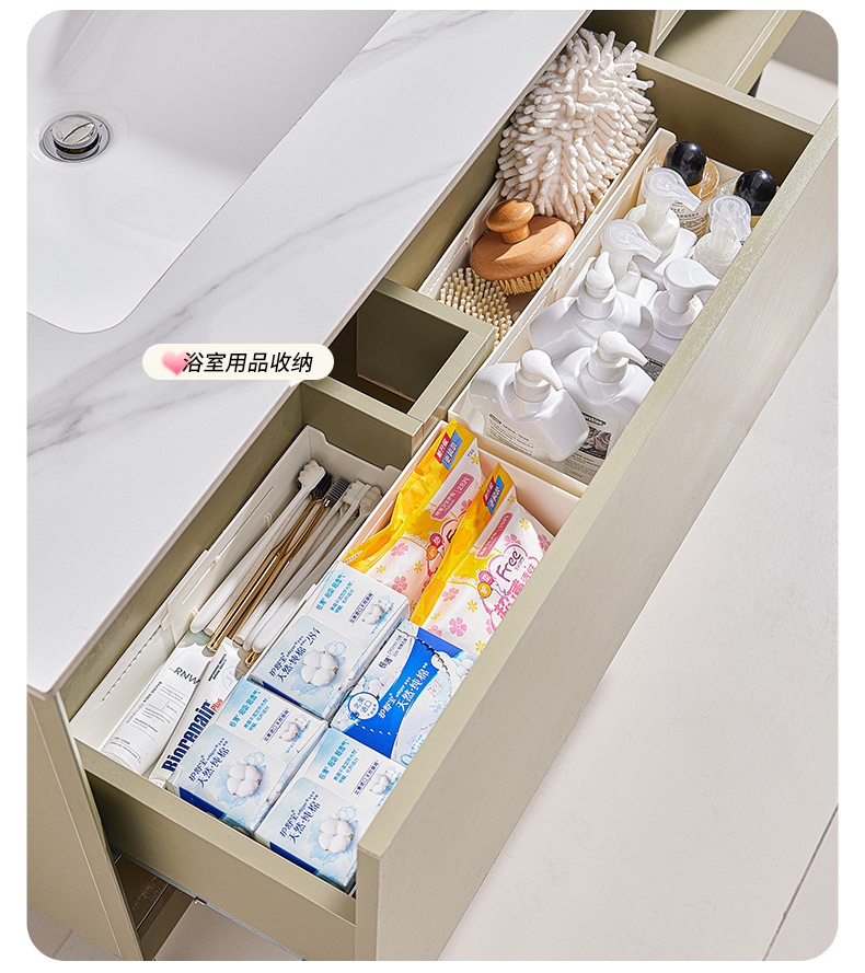 HQS-222132 日式家居廚房抽屜分隔可伸縮帶隔板收納整理盒 小號窄款--奶油白色 17 登錄查看