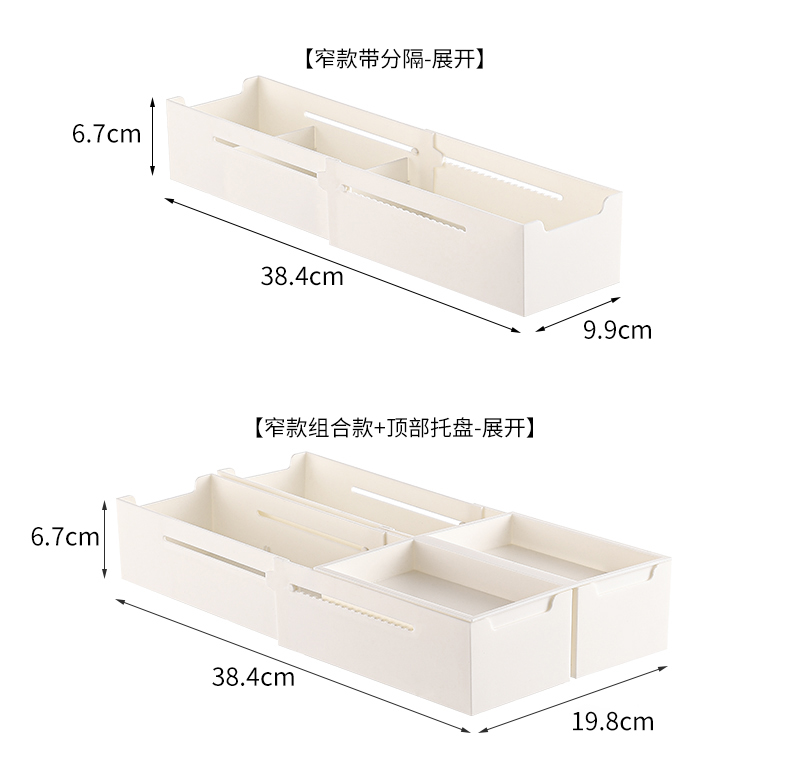HQS-222133 日式家居廚房抽屜分隔可伸縮帶隔板收納整理盒 大號寬款--奶油白色 19 6.20