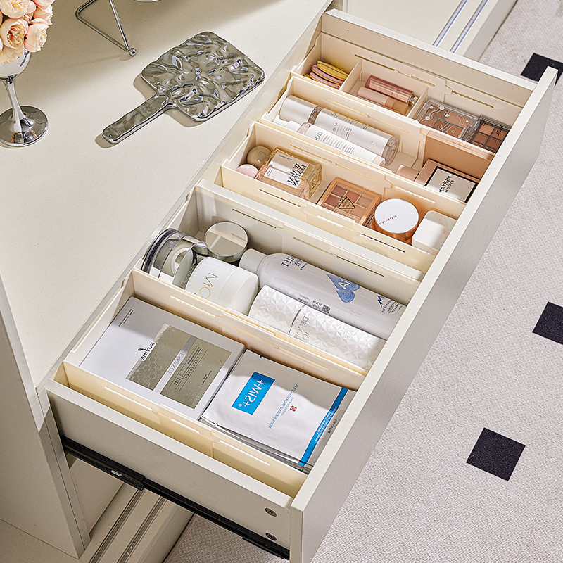 HQS-222133 日式家居廚房抽屜分隔可伸縮帶隔板收納整理盒 大號寬款--奶油白色 19 登錄查看