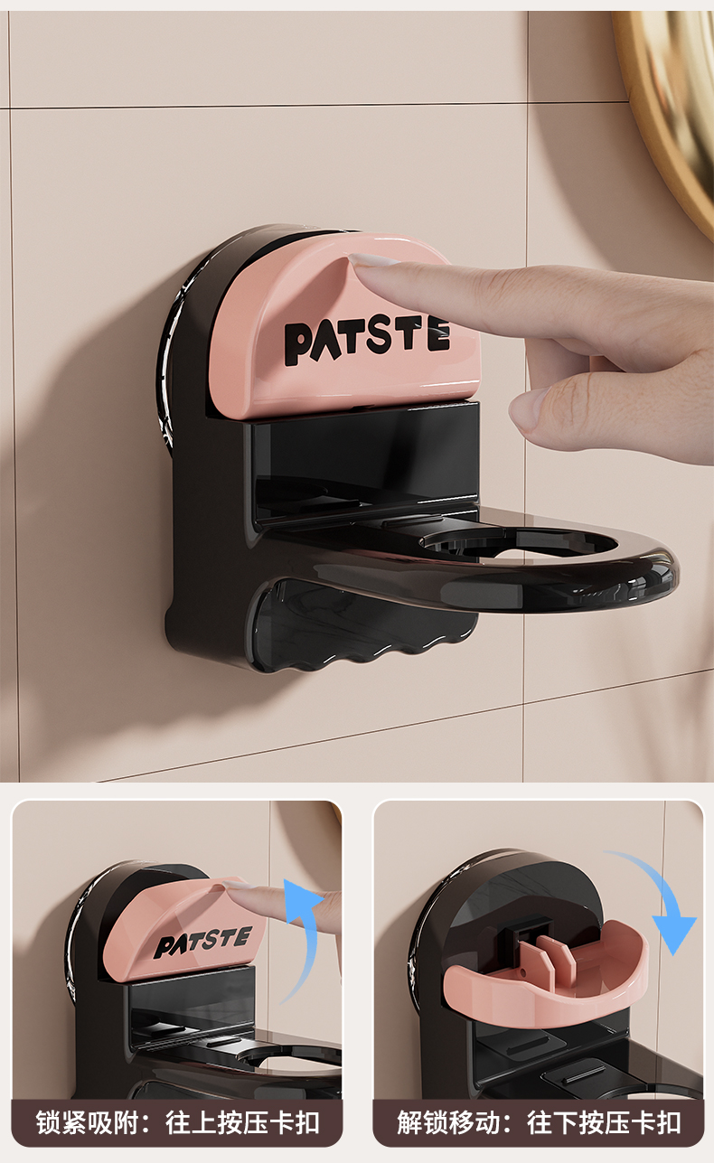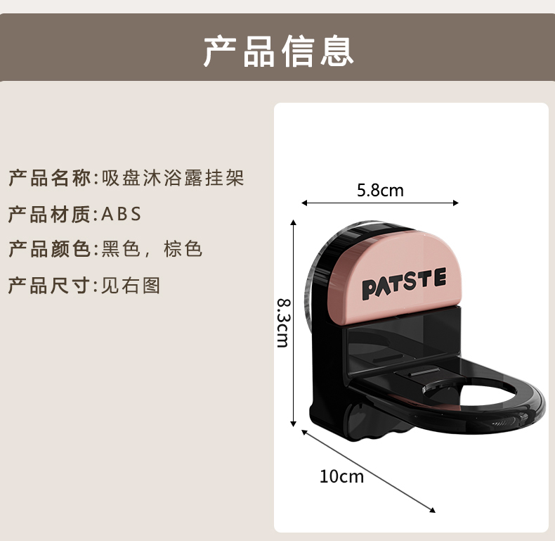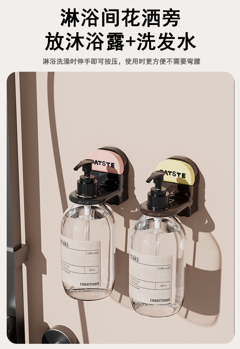 商品名稱: 吸盤式沐浴露掛架 口徑可調節洗手液洗發水瓶掛架--黑粉色
