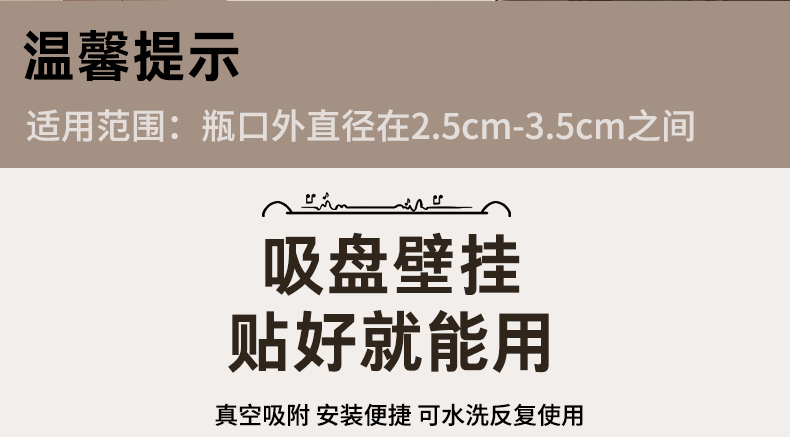 HQS-223391 吸盤式沐浴露掛架 口徑可調節洗手液洗發水瓶掛架--棕黃色 250 2.75
