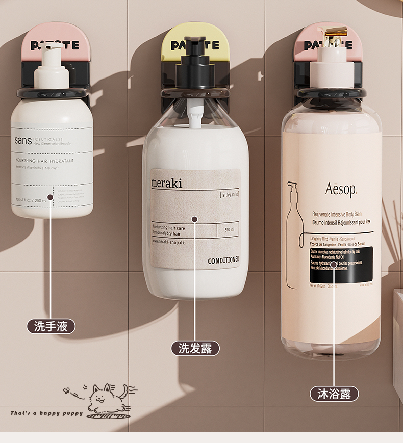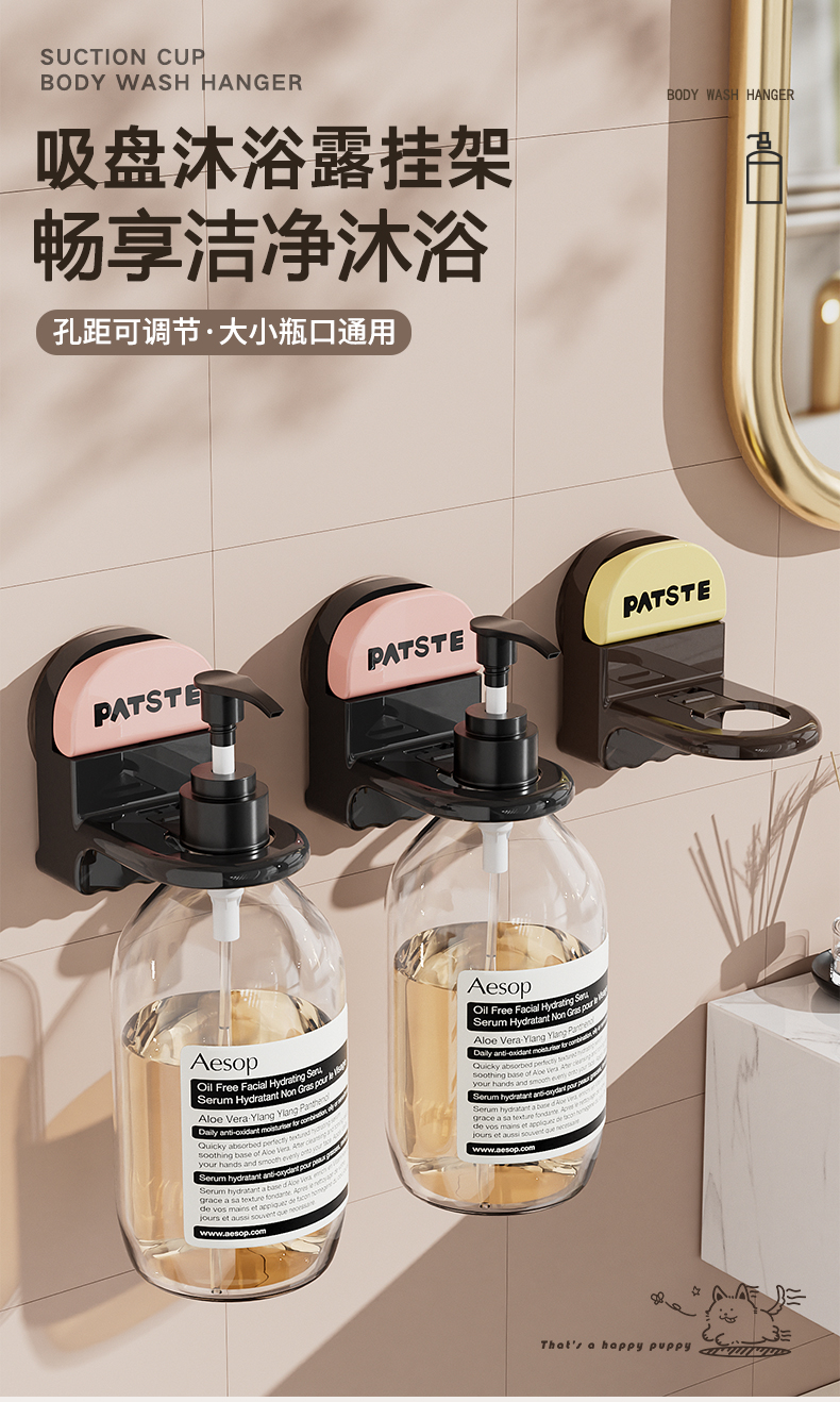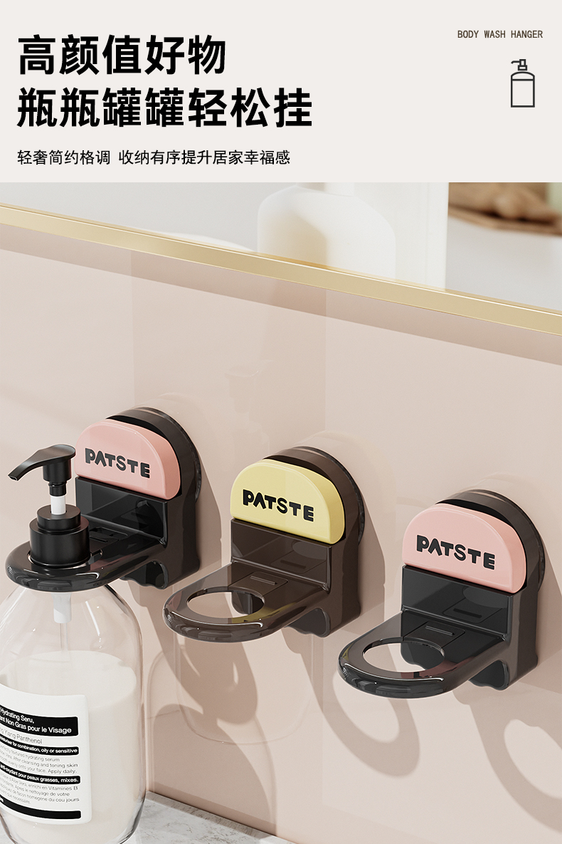 HQS-223390 吸盤式沐浴露掛架 口徑可調節洗手液洗發水瓶掛架--黑粉色 271 登錄查看