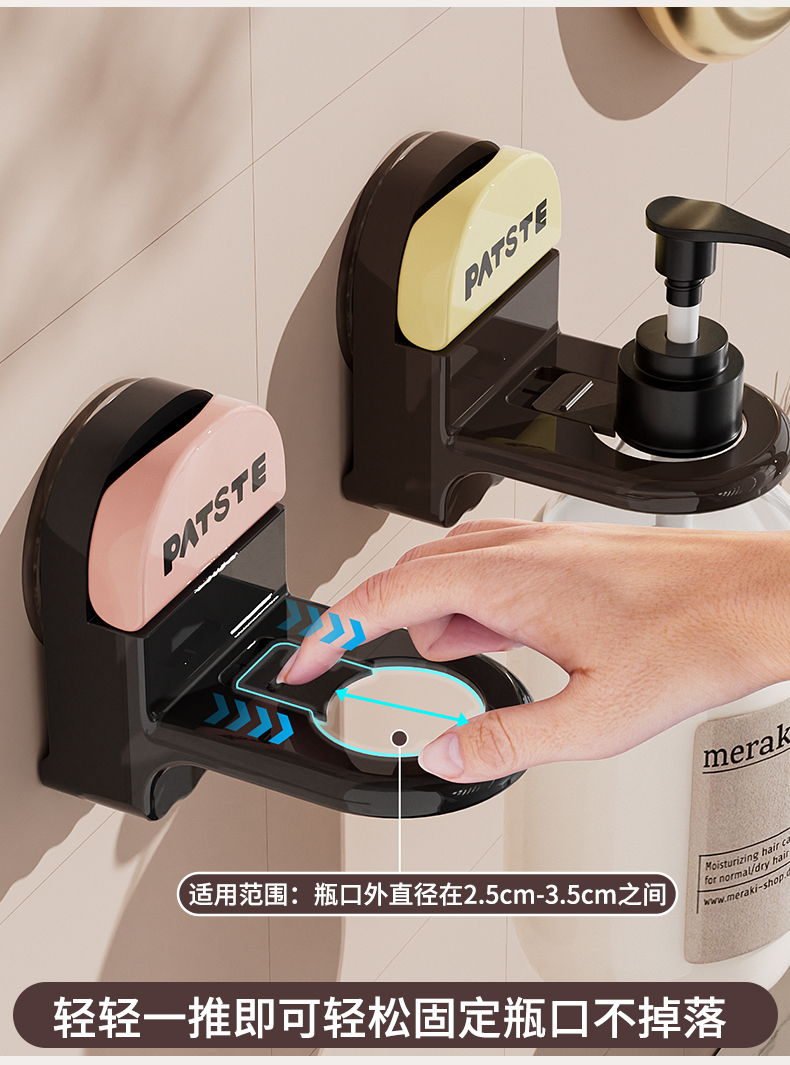 • 商品名稱:吸盤式沐浴露掛架 口徑可調節洗手液洗發水瓶掛架--黑粉色