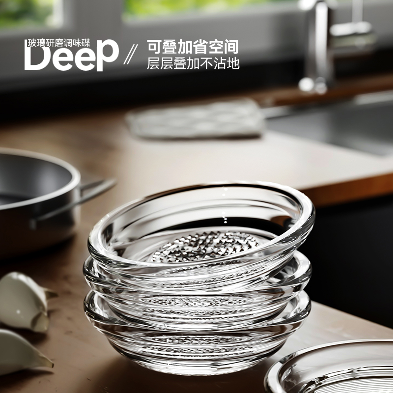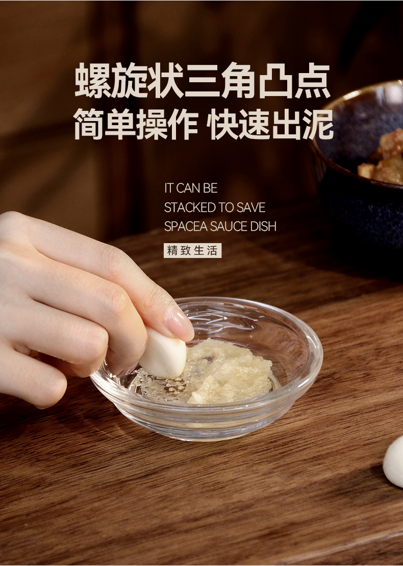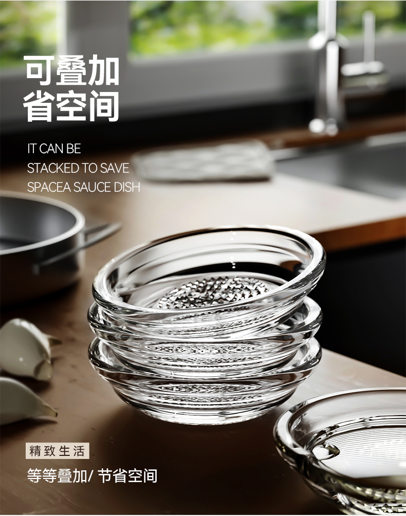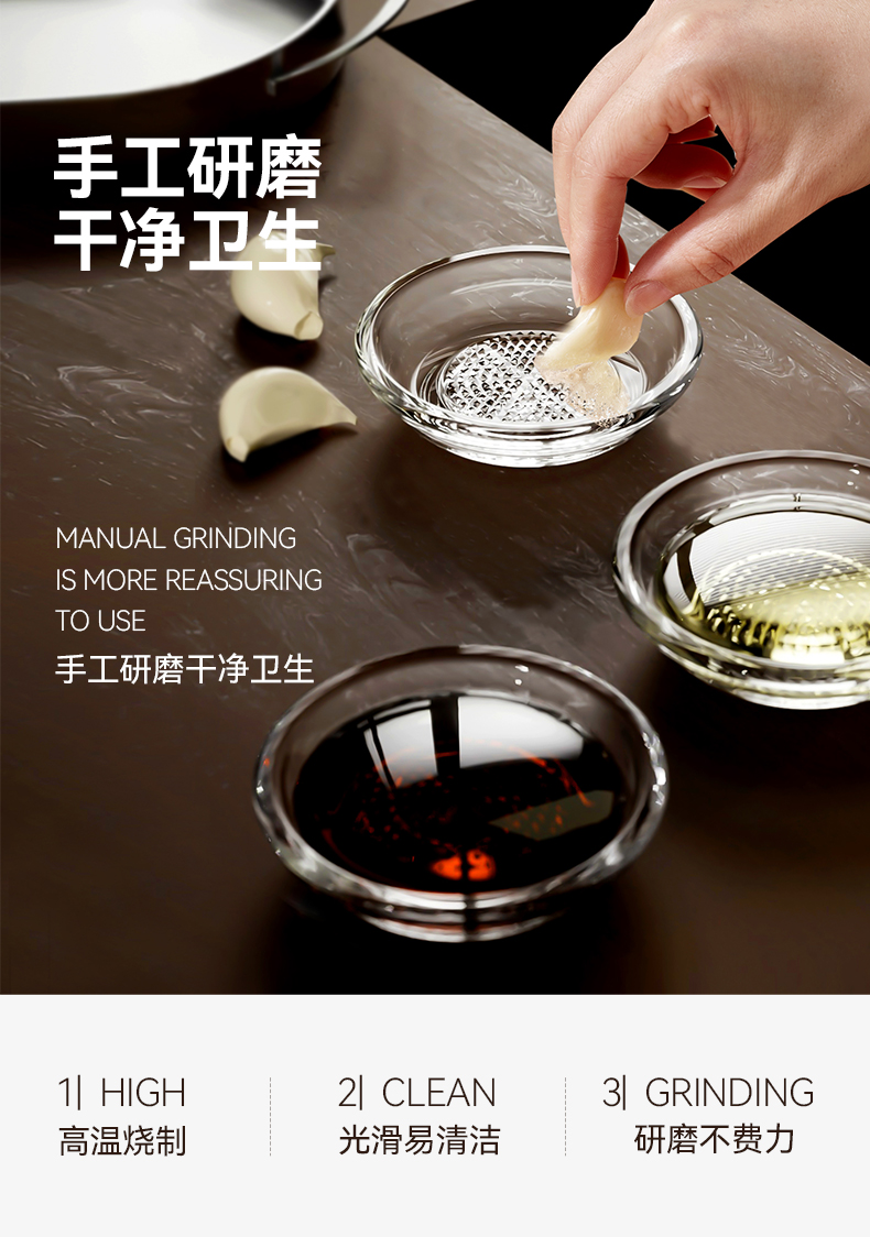 - 商品名稱:生姜蒜泥研磨器玻璃研磨碟 醬油醋小菜調料碟子--透明 兩支裝