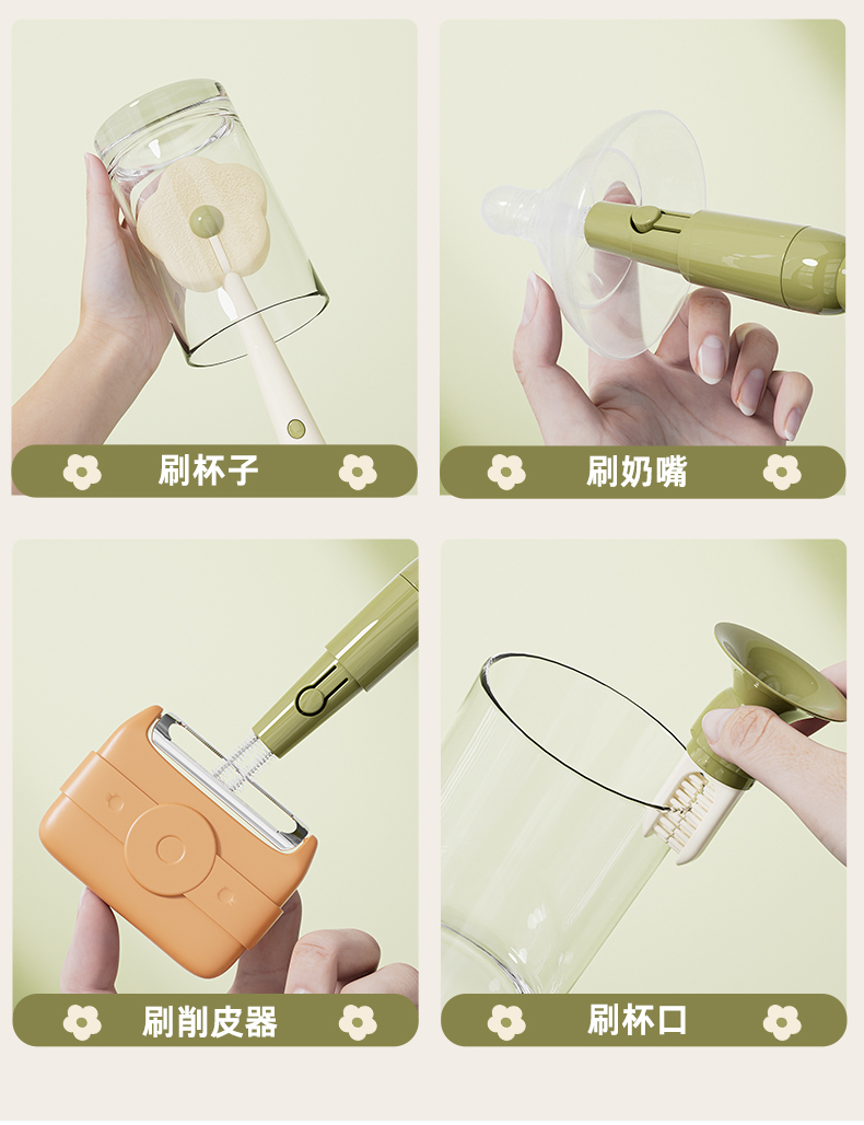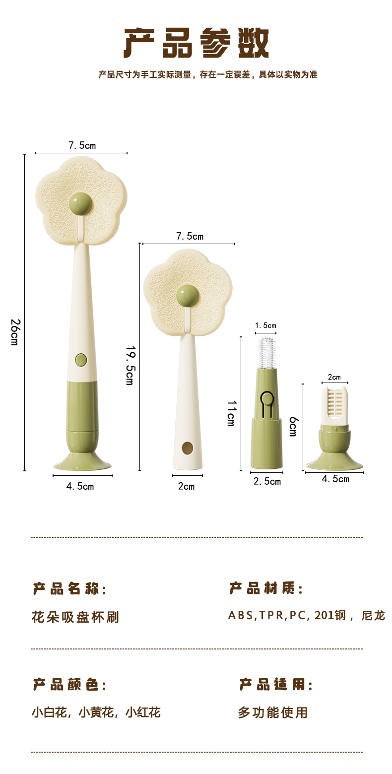 - 商品名稱:花朵形海納頭可拆卸吸盤奶瓶刷水杯刷杯口刷縫隙刷--白色