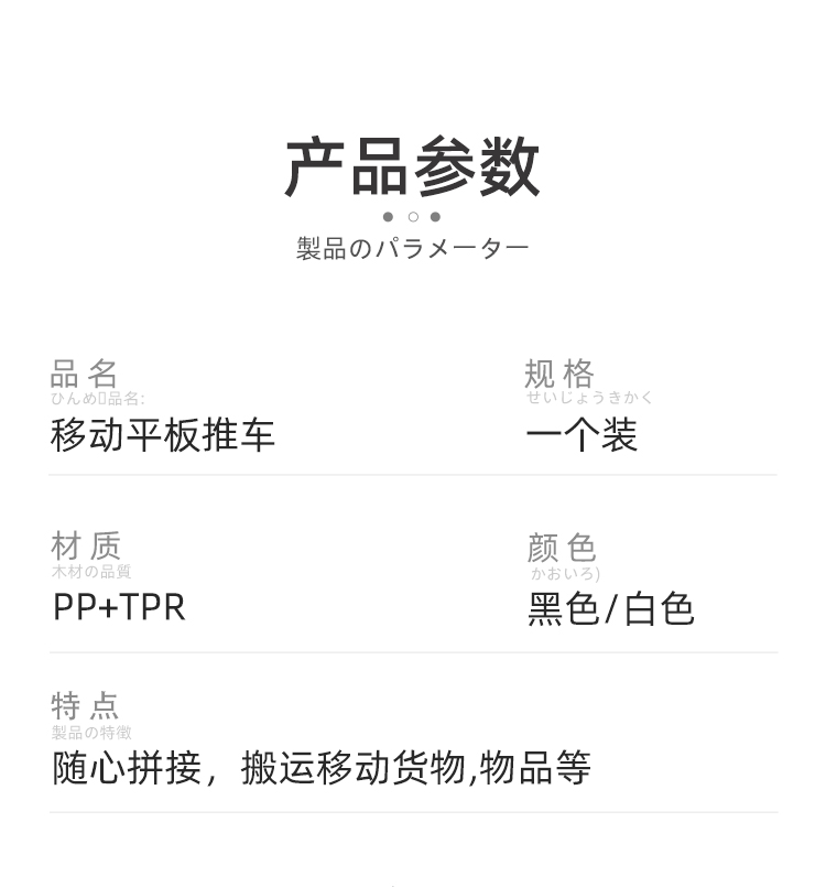 商品名稱: 可拼接靜音萬向輪移動平板小推車 移動平板托盤--白色