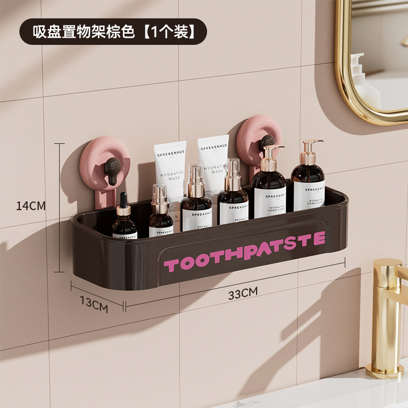 強(qiáng)力雙吸盤置物架 廚衛(wèi)鏤空瀝水收納架--棕色