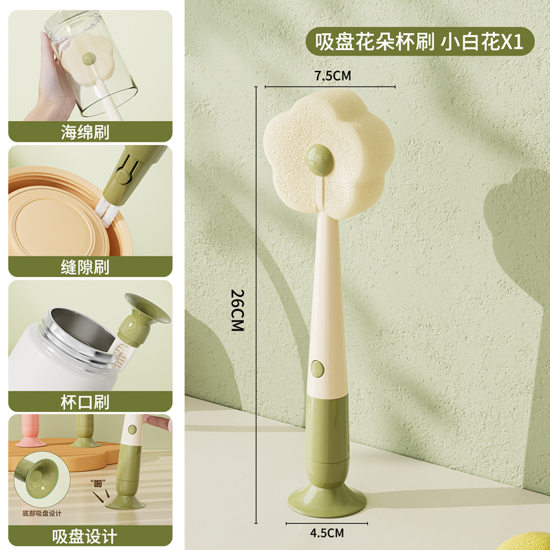 花朵形海納頭可拆卸吸盤奶瓶刷水杯刷杯口刷縫隙刷--白色